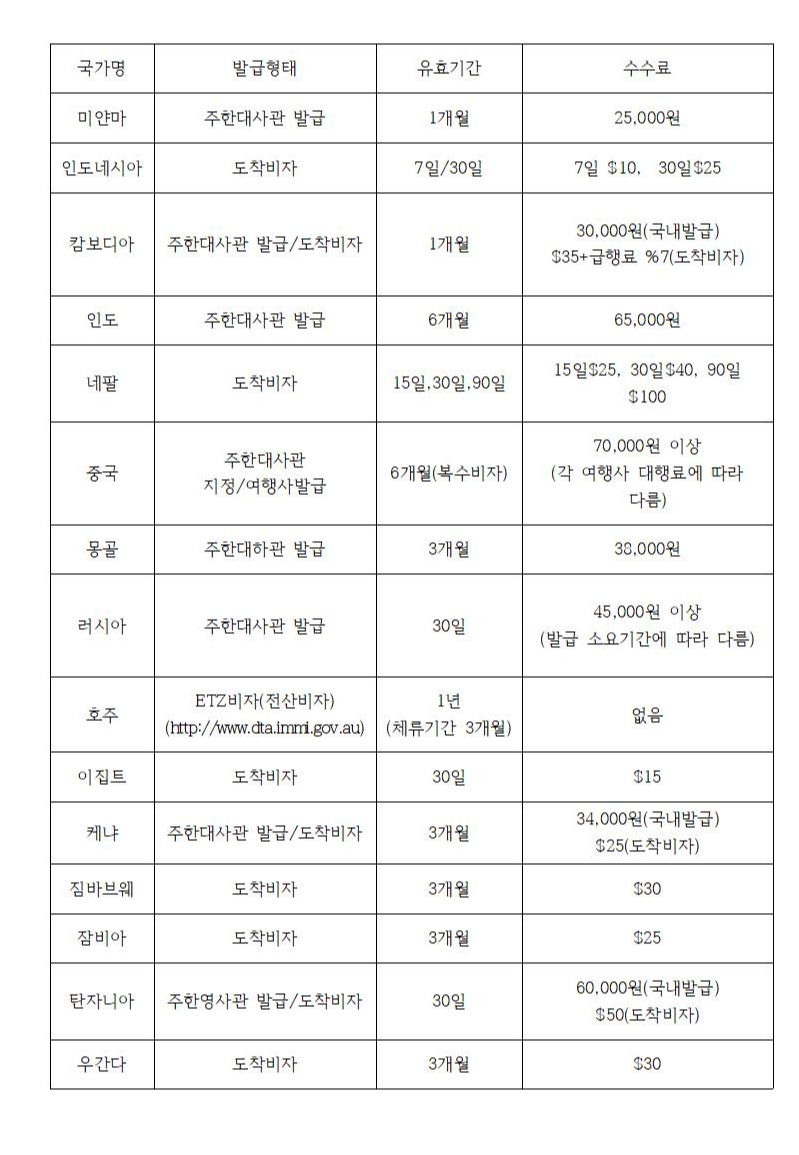 즐거운 해외 여행을 위해 미리 알아보고 준비 하시기 바랍니다.