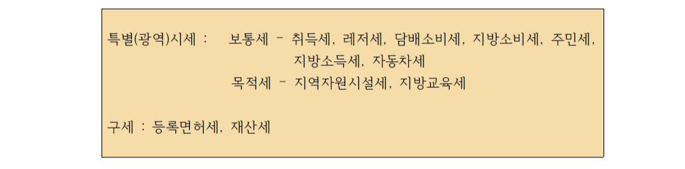 현재 우리 나라에서 시행되고 있는 세금의 종류는 다음과 같다.