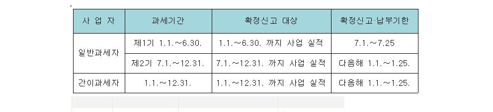 일반과세자는 6개월을 과세기간으로 매년 1월과 7월에,