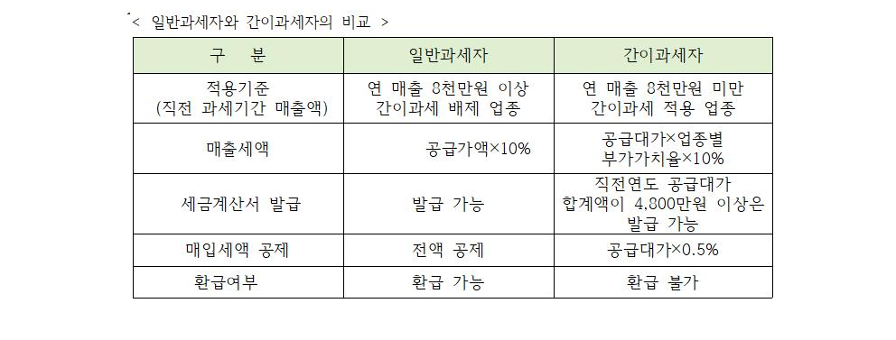 * 부가가치세 계산 산식, 세금계산서 발급의무 등의 차이를 고려해서 어느 과세유형이 적합한지 판단하여 사업자등록을 하여야 하며, 부가가치세 신고실적 등에 따라 다음연도에 과세유형을 새롭게 판정하게 됩니다.